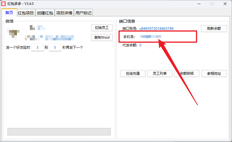 输入端口手机号+验证码登录。一个端口下所有发红包的员工微信,资金都是一起充值、共享使用。