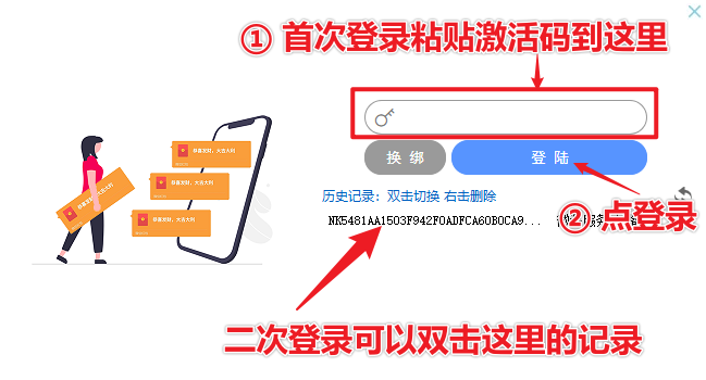 红包多多快捷方式,再启动的软件登录界面输入激活码登录