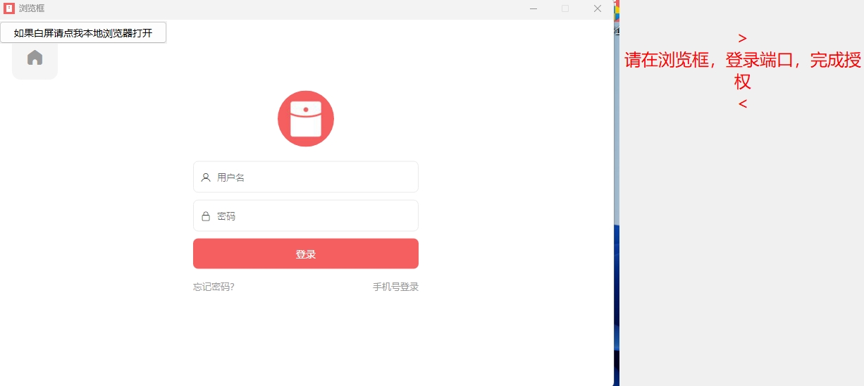 - 登录后,会自动打开浏览框,出现登录框,用 第1️⃣步 端口注册激活 中的端口