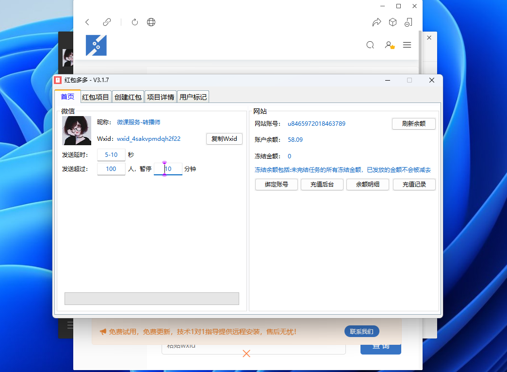 - 端口登录成功,会自动绑定这个微信为员工,提示绑定成功,并弹出软件界面,并显示余额信息。