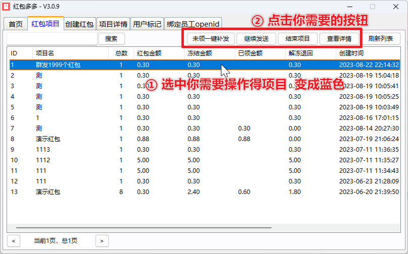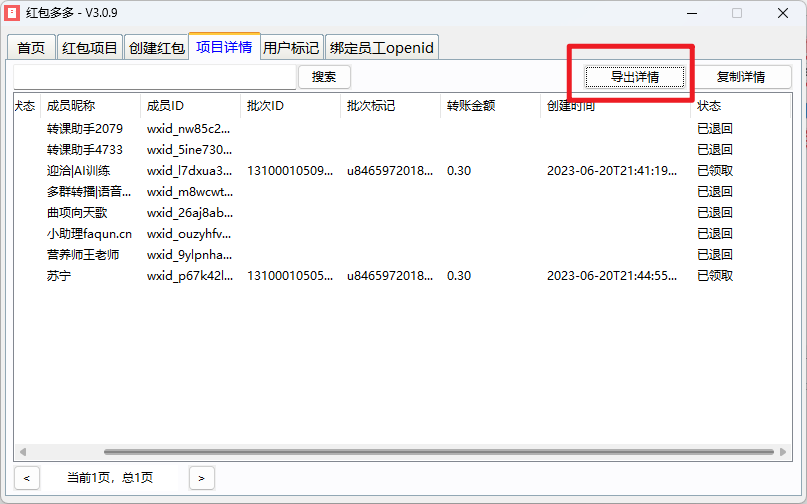 选中项目后,点击查看详情,便可以查看项目的明细,点击导出详情可以导出该项目的excel表格进一步对账。